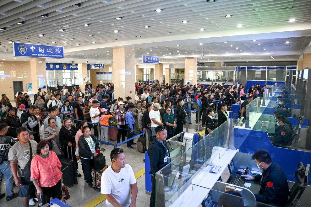 2024年9月11日,搭客正在二连浩特公港口联检大厅打点通关手续。记者 贝赫 摄!