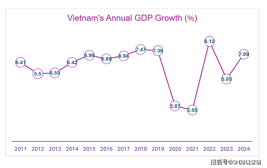 按照越南统计总局(GSO)的数据,虽然面对外部波动和不确定性,2024年越南的P仍实现了7。09%的增加。虽然这一增速略低于2018年、2019年和2022年的峰值,但仍然显示出强劲的经济反弹,使越南成为该地域的亮点。